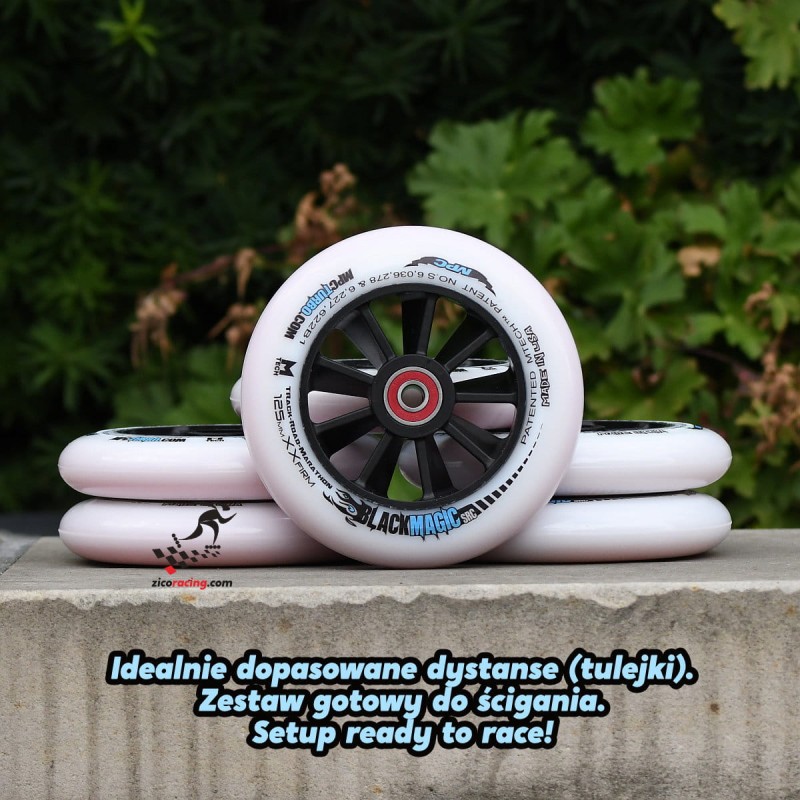 Kółka MPC Black Magic 125mm XX-Firm + łożyska Bones Reds + dopasowane tulejki. Pierwszy na świecie producent kół dwuwarstwowych. Cena za 6 sztuk. Dwie wersje twardości: XFirm na trasy mieszane czy dla osób lekkich lub normalnej wagi oraz XXFirm na gładkie trasy czy dla cięższych osób.