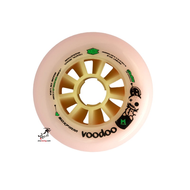 Kółka do jazdy szybkiej MPC Junk VooDoo 90mm X-Firm. Przeznaczone na wyścigi uliczne, ciasne zakręty, szczególnie na suche, gładkie nawierzchnie. Bardzo niskie opory toczenia tych kół zapewniają uzyskanie wysokiej prędkości. Technologia double layer - podwójna twardość opony. Twarda, zewnętrzna powłoka zapewnia niskie opory toczenia (dużą prędkość); a miękka, wewnętrzna odpowiada za trzymanie na łukach oraz odbicie.