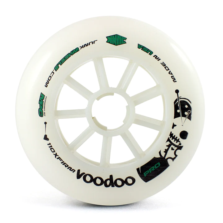 Kółka MPC Junk VooDoo Pro SINGLE 110mm X-Firm. Przeznaczone do jazdy miejskiej, Wizard Skating na wyścigi uliczne, ciasne zakręty, szczególnie na suche, gładkie nawierzchnie. Bardzo niskie opory toczenia tych kół zapewniają uzyskanie wysokiej prędkości. Technologia single layer.