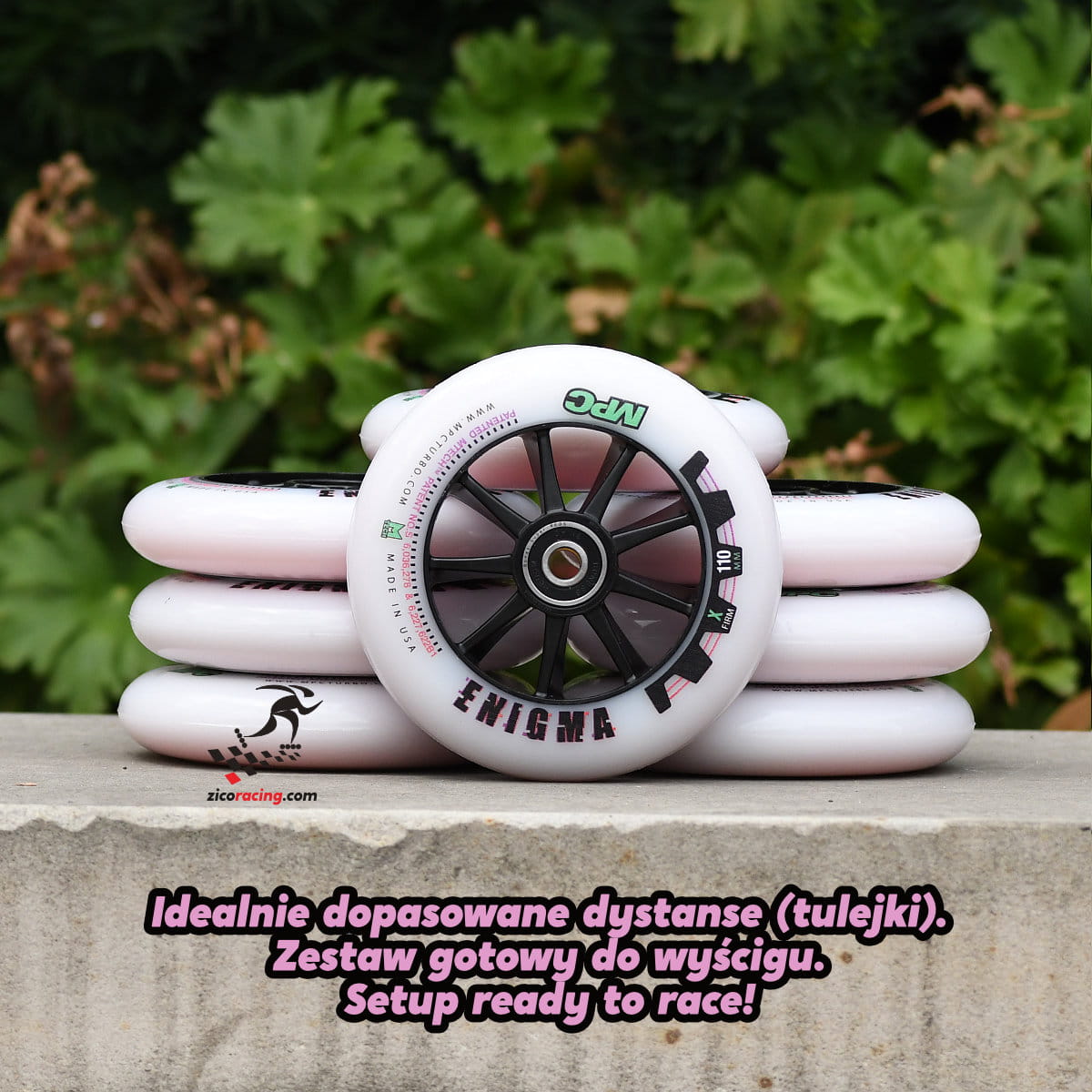 Kółka do jazdy szybkiej MPC Enigma 110mm X-Firm + łożyska Bones Super Reds + dopasowane tulejki. Przeznaczone na wyścigi uliczne oraz torowe. Bardzo niskie opory toczenia tych kół zapewniają uzyskanie wysokiej prędkości.