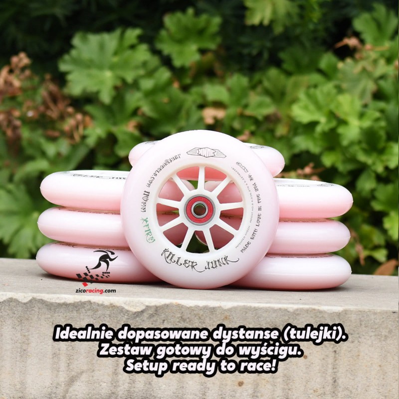 Kółka do jazdy szybkiej MPC Junk Killer Junk 110mm X-Firm + łożyska Bones Reds + dopasowane tulejki. Przeznaczone na wyścigi uliczne oraz torowe, szczególnie na suche, gładkie nawierzchnie. Bardzo dobre kółka na przedłużone sprinty, biegi eliminacyjne oraz punktowane. Bardzo niskie opory toczenia tych kół zapewniają uzyskanie wysokiej prędkości.