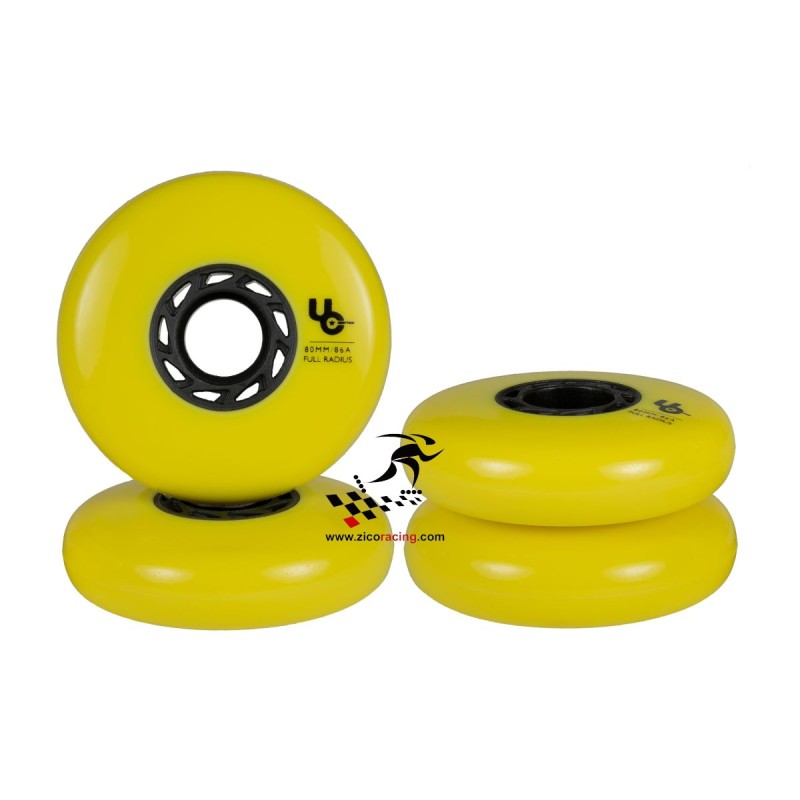 Kółka do rolek Undercover Team 80mm/86a, żółte, 4 sztuki - profil płaski