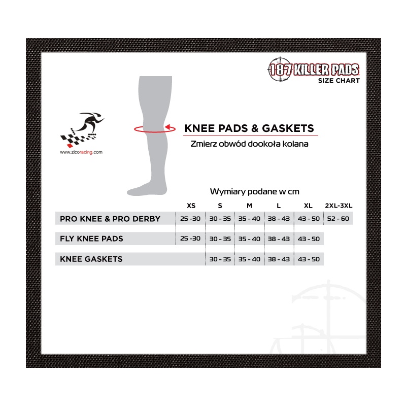 183 Knee Gasket- ochraniacze oraz ocieplacze na kolana. Możliwość łatwego ugięcia nogi w kolanie, dobre odprowadzenie ciepła z tylnej części kolana. Wysoka jakość wykonania. Tabela rozmiarów na zdjęciu.