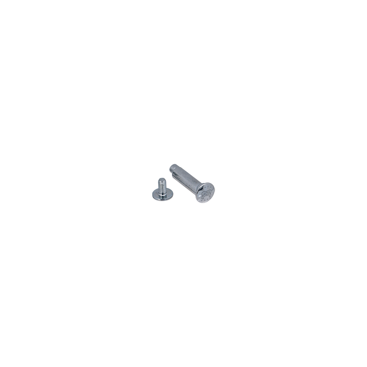 Śruba FR dwuczęściowa R2-R, srebrna z wypustkami - do mocowania pierwszego i czwartego kółka w szynach R2-R, średnica 8mm. Pasuje do szyn w rolkach FR Skates FR2 oraz FR Spin 80.