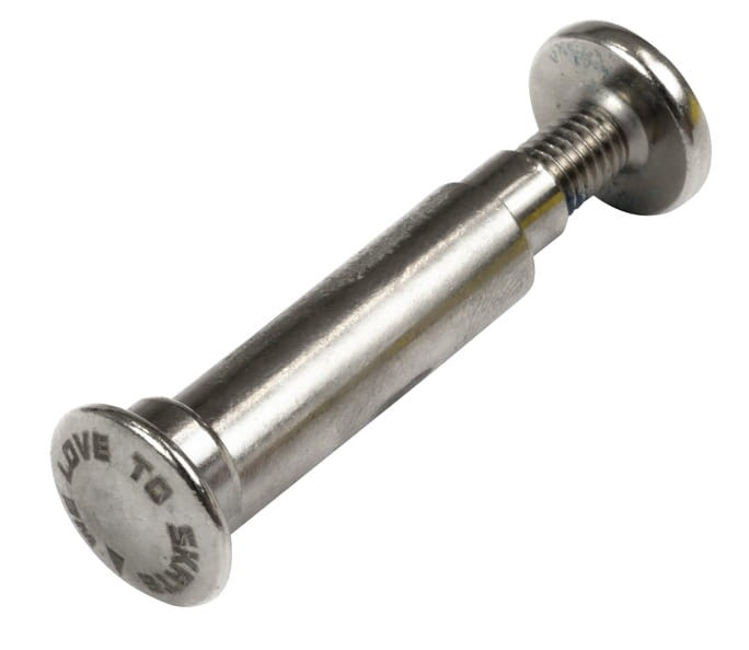 Śruba Powerslide dwuczęściowa rocker, srebrna z wypustkami. Nakrętka z otworem torx. Pasuje również do modelu szyn R2R marki FR Skates modeli FR Spin 80 oraz FR2 z szyną rockerowaną.