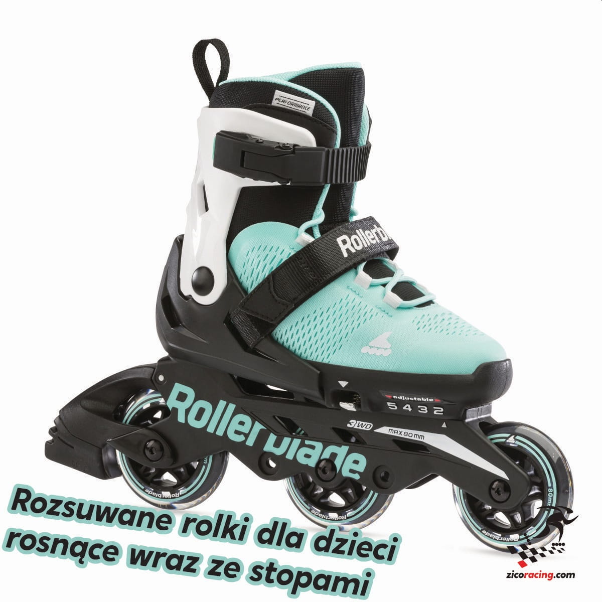 Rolki Rollerblade Microblade 3WD G Aqua Blue / White 2024 rozsuwane dla dzieci 3 i 4 kółkowe