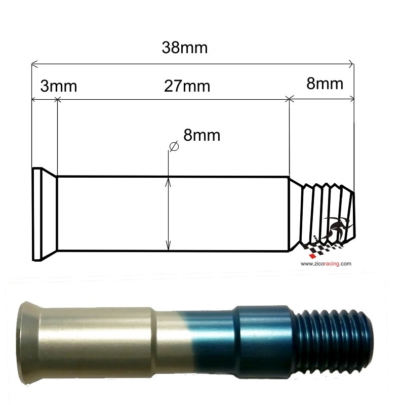 Śruba - ośka Cadomotus, średnica 8mm, długość 38mm, długa