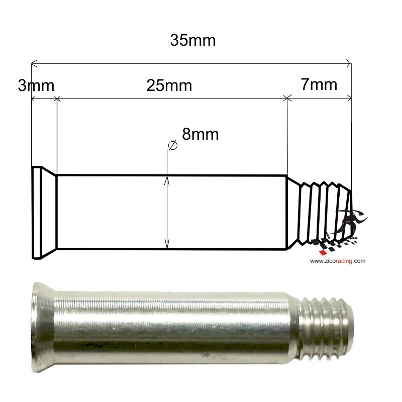Śruba - ośka Powerslide do mocowania kółek, średnica 8mm, długość 35mm, długość gwintu 7mm. Pasuje do większości modeli szyn na rynku, m.in. takich marek jak: Powerslide, Rollerblade, Schankel, Simmons Racing i innych. Gniazdo śruby na klucz torx.