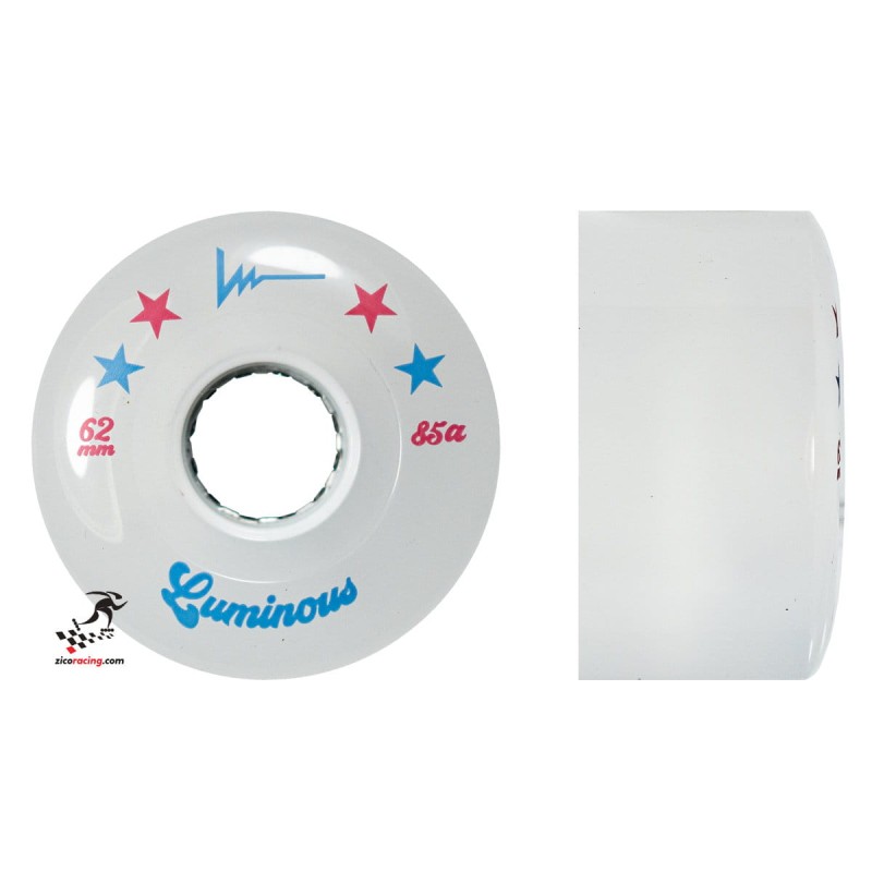 Świecące kółka do wrotek Luminous 62mm 85a. Przeznaczone do jazdy rekreacyjnej. Świecą jasnym światłem ledowym podczas obrotu, kiedy tulejka działa jako prądnica zasilająca. 4 sztuki z tulejkami w komplecie.