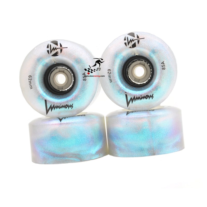 Świecące kółka do wrotek Luminous Czarna Perła 62mm 85a. Przeznaczone do jazdy rekreacyjnej. Świecą jasnym światłem ledowym. 4 sztuki z tulejkami w komplecie.