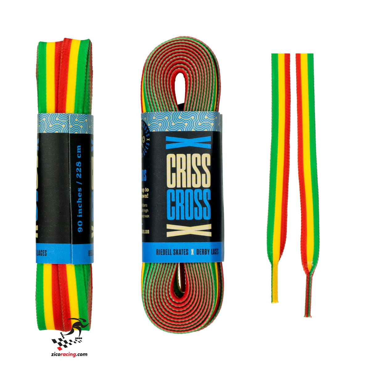 Sznurowadła woskowane Criss Cross Trios Green Red Yellow - różne długości, szerokość 10mm, w zestawie para.