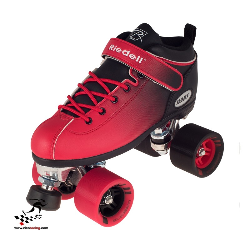 Wrotki Riedell model Dart. Rekreacyjne wrotki wykonane z materiału wegańskiego clarino (poliamid oraz poliuretan). Łożyska ABEC5, kółka Dart 62mm/93a. Wrotki dostępne w 4 kolorach: różowo/niebieskie, zielono/czarne, czarno/czerwone i fioletowo/różowe. Szyny aluminiowe. Wrotki nadają się dla początkujących w jeździe rekreacyjnej oraz szybkiej. W zestawie klucz do kół, king pinów oraz hamulców.